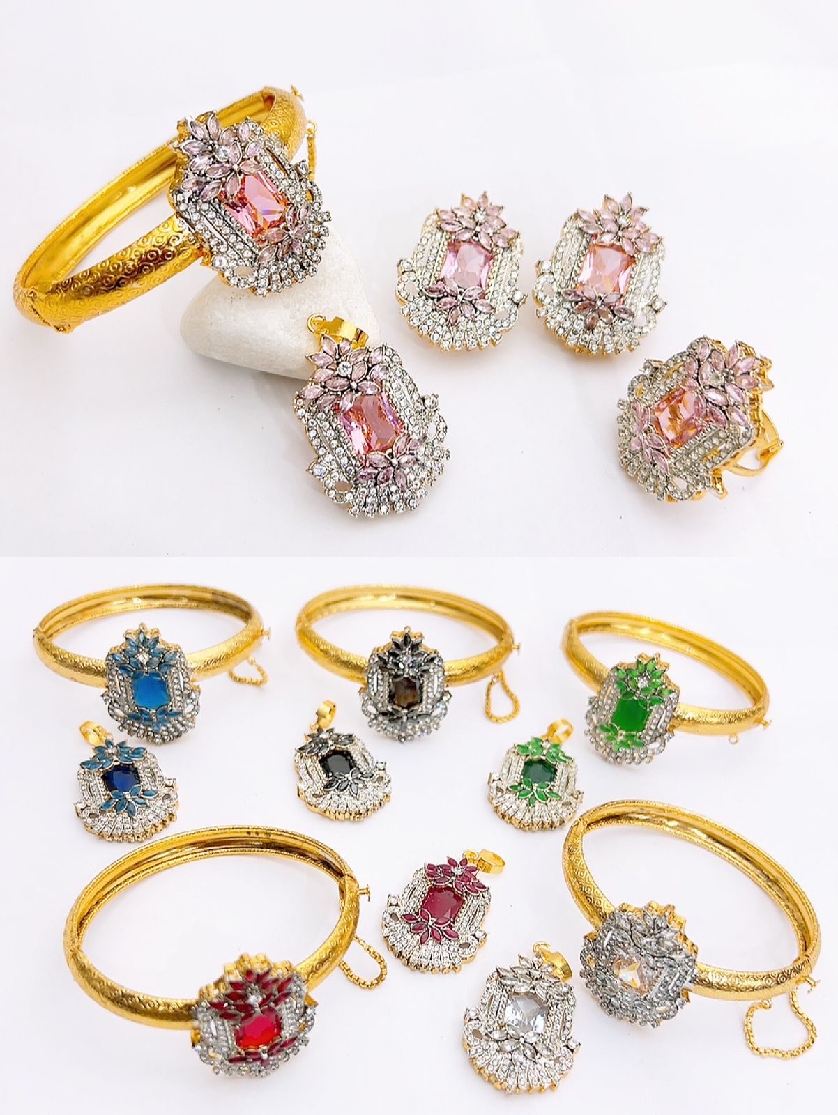 Native made openable kara with combo set in real stones fine quality